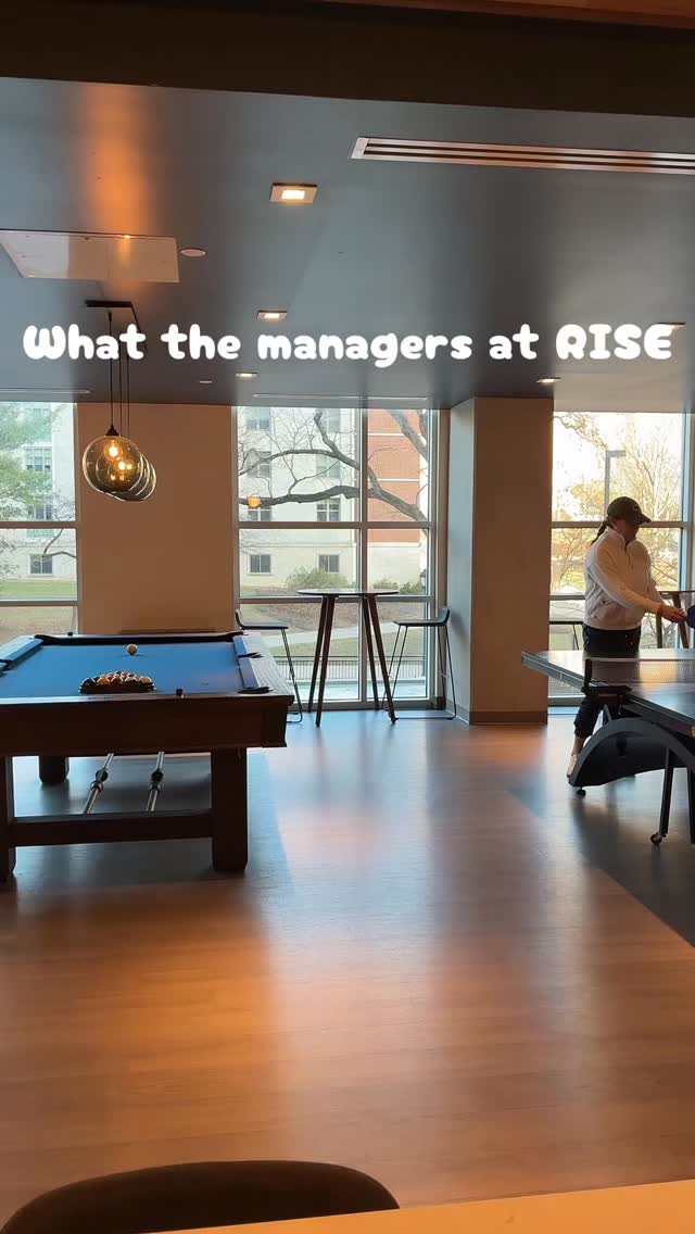 Hit your goals in the decked-out fitness center, relax with friends in the fully stocked game room, hit the books in one of our various study spaces, or relax and play a round of corn hole on the courtyard. RISE has it all.